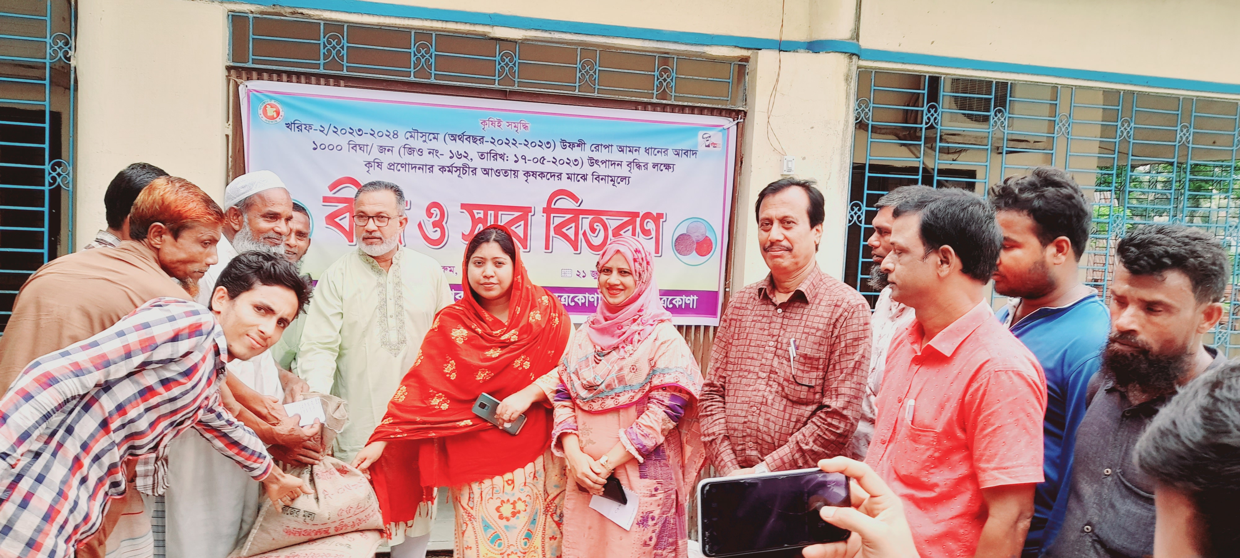 জিও-১৬২, তারিখ -১৭/০৫/২০২৩ অনুযায়ী ১০০০জন/বিঘা কৃষক-কৃষাণী মাঝে রোপা আমন/২০২৩-২৪ মৌসুমে (অর্থবছর ২০২২-২৩) কৃষি প্রণোদনা কর্মসূচির আওতায় বিনামূল্যে সার, বীজ বিতরণ এর শুভ উদ্বোধন করা হয়